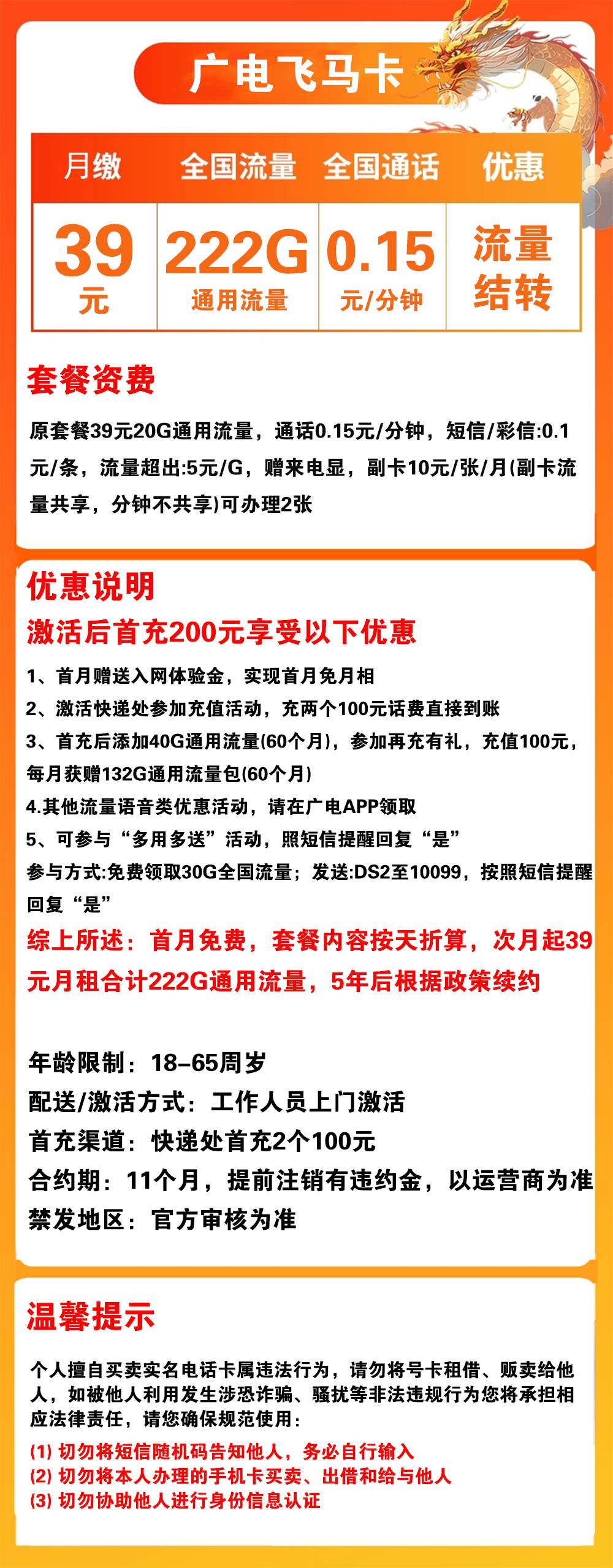 打工人专属!广电飞马卡39元222G,通勤办公流量管够不心疼
