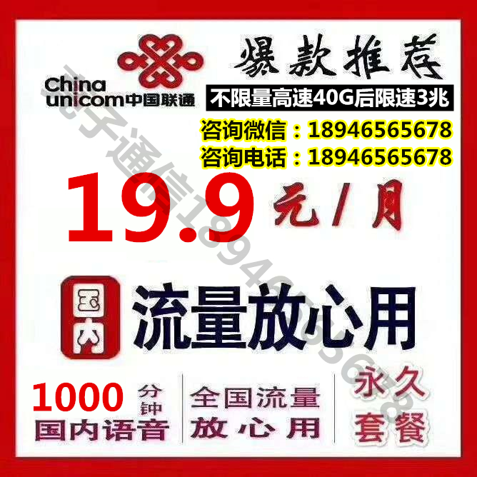 联通69元绝版包不限量不限速 月租69元包1000全国分钟和全国不限量不限速 看好了 不限速不限量 赠送来电 终身资费 照片过户 咨询微信:443491906 咨询电话:18946565678...